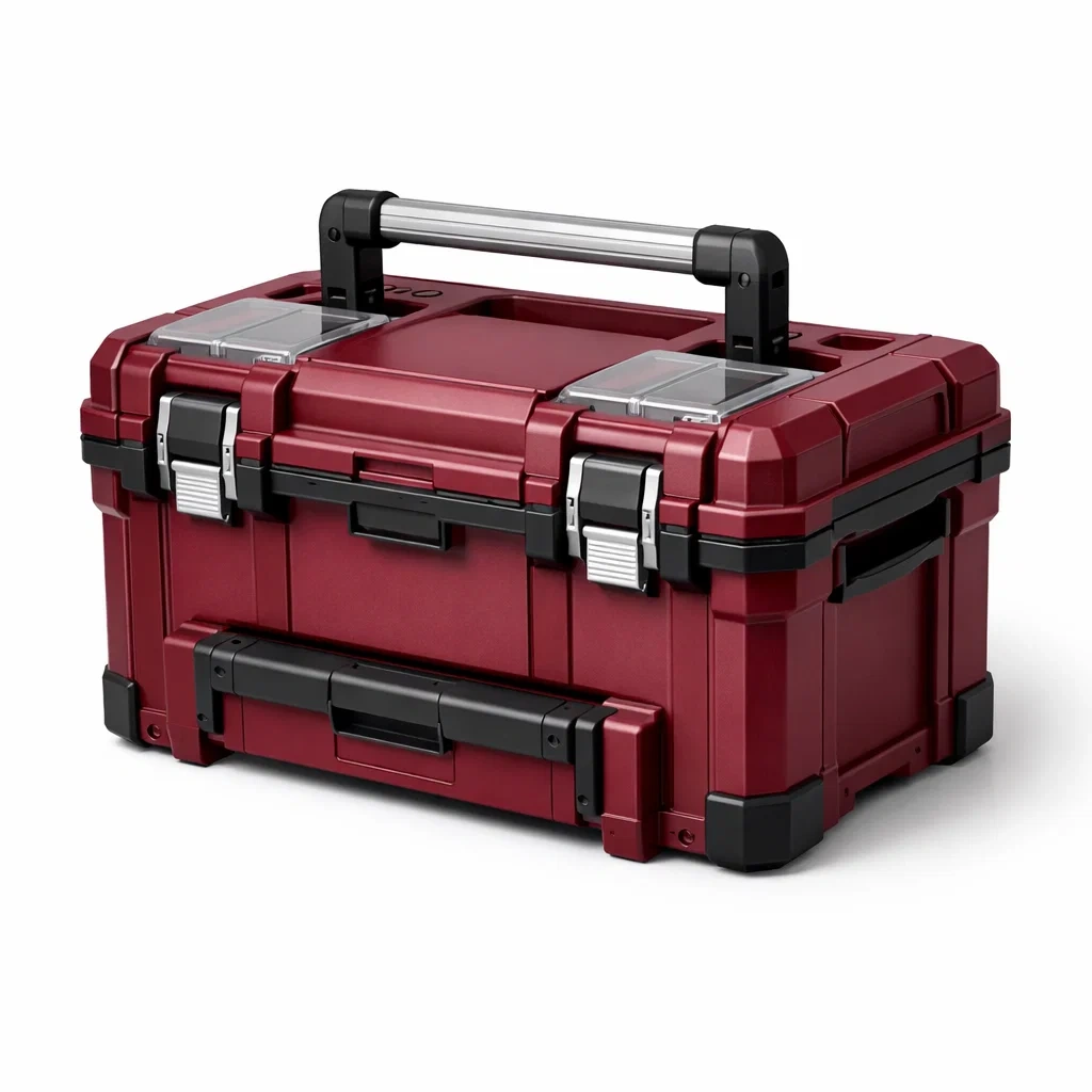 Boîte à outils en plastique rouge avec poignées et fermetures métalliques 52x30x27 cm
